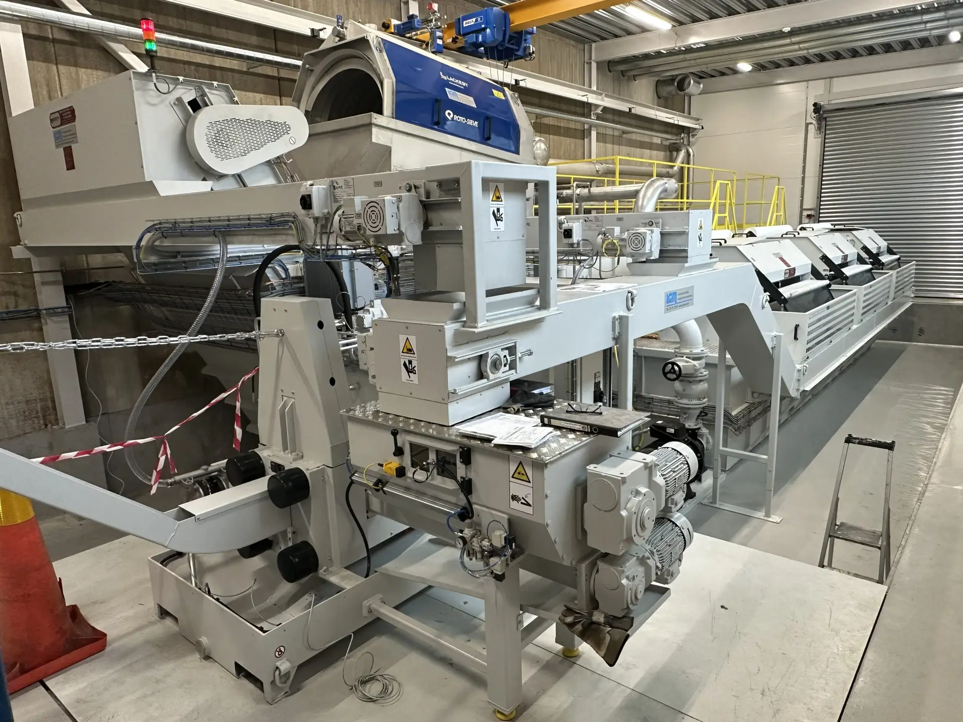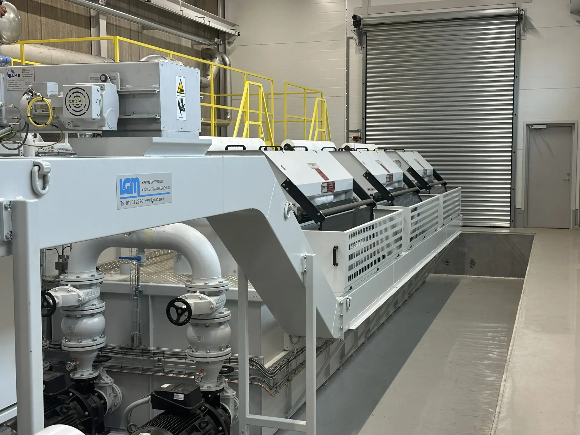 Åt en stålförädlare har LGM levererat en komplett filteranläggning för slipemulsion till en helt ny fabrik, uppbyggd i renoverade lokaler från ett tidigare valsverk. När vi kom in i projektet var byggnaden fortfarande på grusnivå, och kunden stod inför uppgiften att både bygga om lokalerna och utveckla en egen, mycket avancerad slipmaskin för stålbandsproduktion. Filteranläggningen blev den första processen som driftsattes i de färdigrenoverade lokalerna, mer än ett år innan slipmaskinen var klar. All slipvätska från den nya maskinen leds till vår anläggning där den renas i tre steg – förfiltrering, flotations- och sedimentationsfiltrering samt finfiltrering – helt utan att tillföra vätskan energi genom pumpning. Hela processen drivs med gravitation, vilket ger en robust, energieffektiv och driftsäker lösning. Den filtrerade slipmullen fångas upp på fem olika punkter i systemet och matas till en brickettpress som ingår i leveransen. På så sätt får kunden både en stabil reningsprocess med hög renhetsgrad på emulsionen och en rationell hantering av slammet, anpassad för en produktion med mycket höga krav på precision.