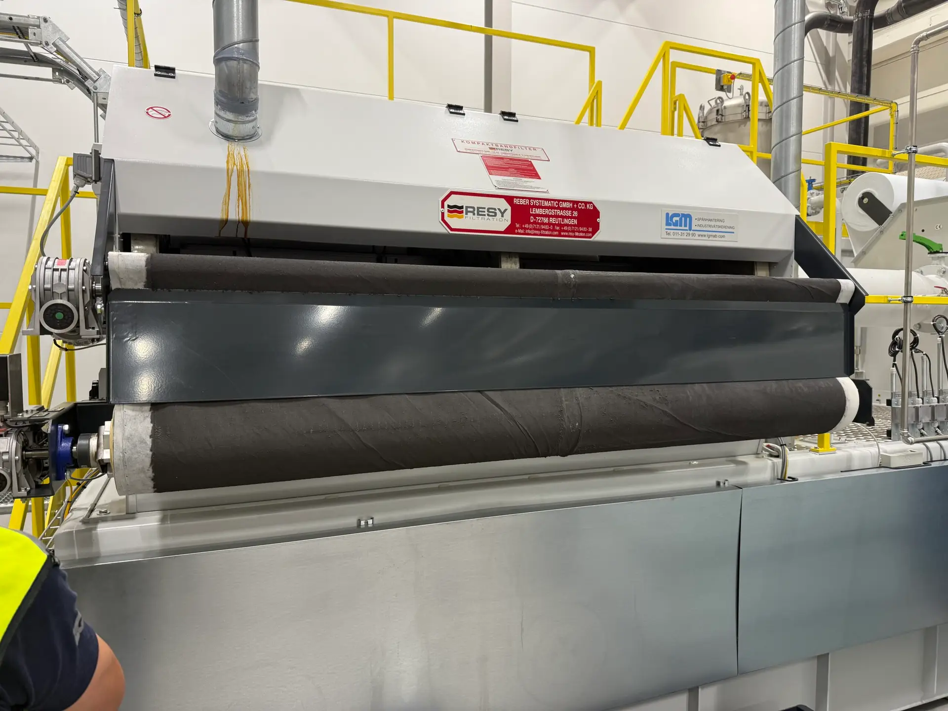 Åt en tillverkare av tunga fordon har LGM levererat ett nytt filtersystem för slip- och polerprocesser, där produktionsutrustningen ännu inte var installerad när projektet startade. Processvätskan kontamineras med mycket små partiklar, vilket ställde höga krav på både renhet och driftsäkerhet. Lösningen blev en trestegs filteranläggning där vätskan först passerar en sedimenteringszon för att avskilja större och tyngre partiklar. Därefter filtreras vätskan genom filterduk för att fånga de finare partiklarna, innan den slutligen renas kontinuerligt i rentanken via ett finfilter. På så sätt säkerställs en jämn och hög renhetsnivå i hela systemet. Resultatet uppfyller med god marginal kundens krav, både när det gäller renhet och enkelt handhavande, och har gett en tillgänglighet på 100% för deras produktion. Extra glädjande är att kunden sköter anläggningen mycket väl – efter 18 månaders kontinuerlig drift dygnet runt ser systemet fortfarande näst intill nytt ut.